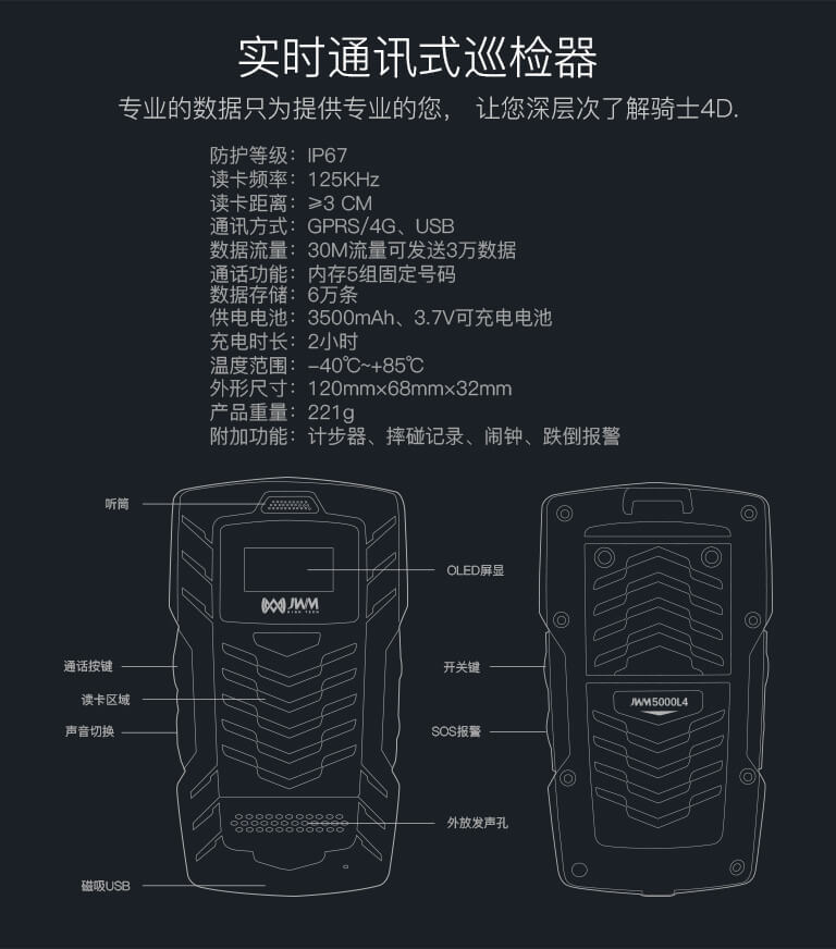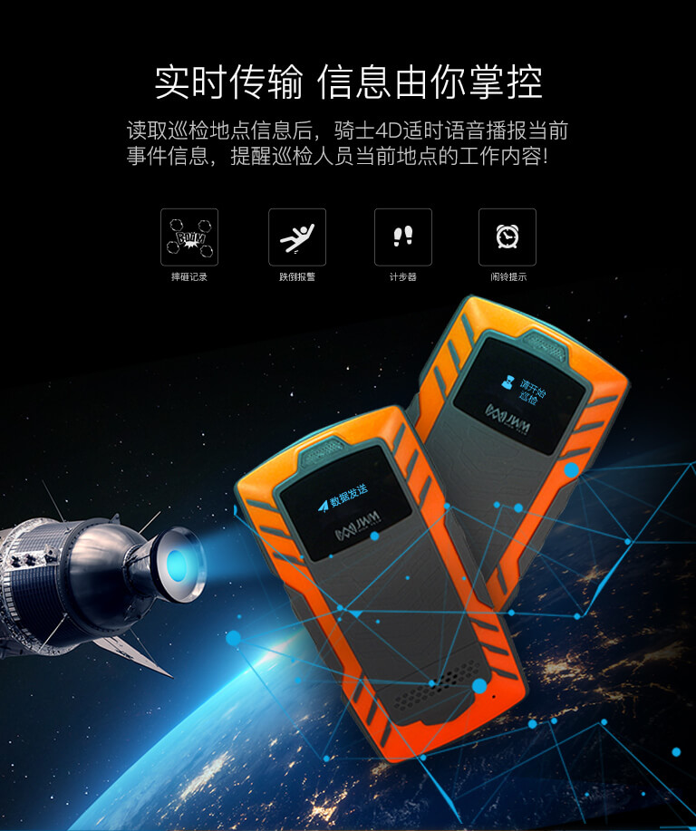 骑士4D巡检器可记录每条巡检路线、巡检点位、巡检时间、完成情况,实现智能化工作考核,并将数据资料实时发送至管理后台形成报表实时监督;防止人员伪造巡检记录、提高管理效率。