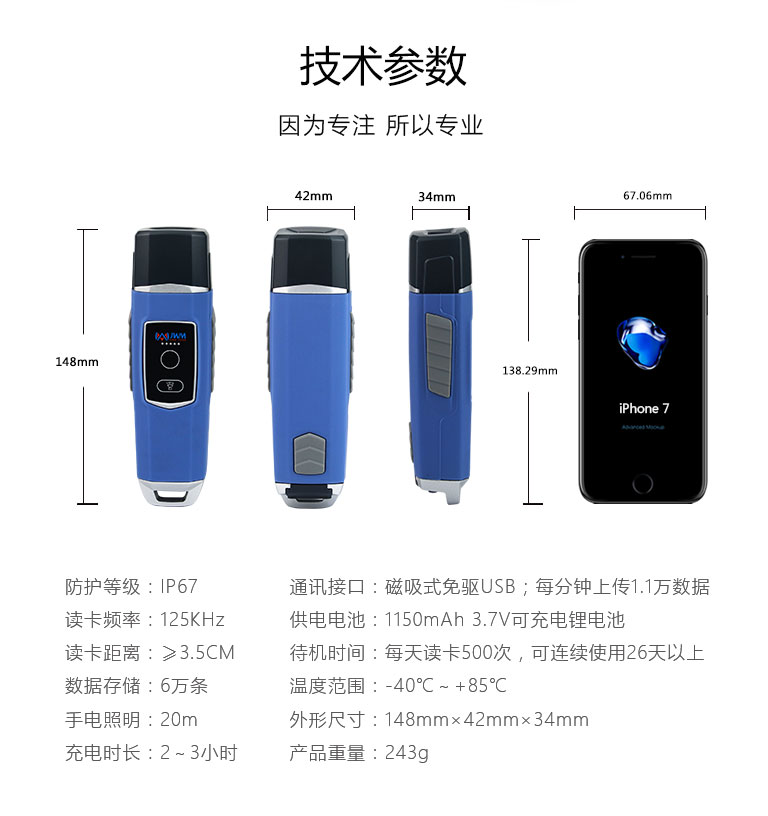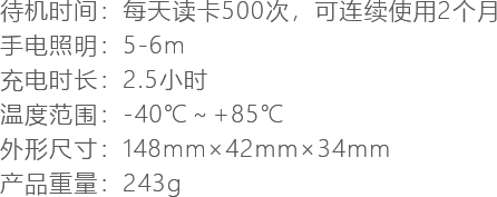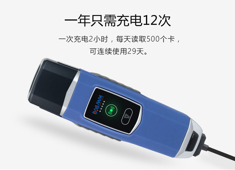 一次充电2小时,每天读取500个卡,可连续使用2个月