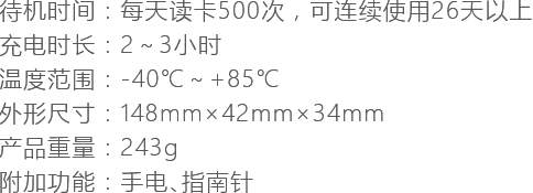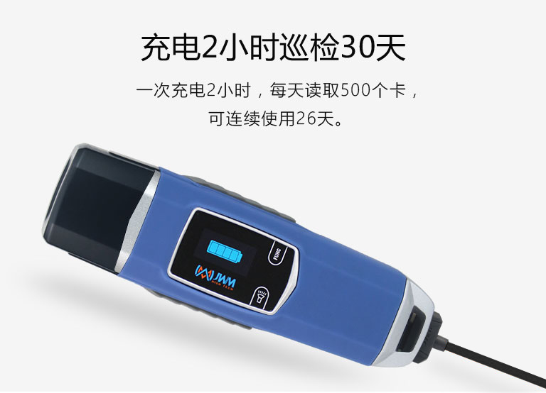 一次充电2小时,每天读取500个卡,可连续使用26天