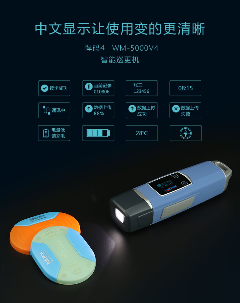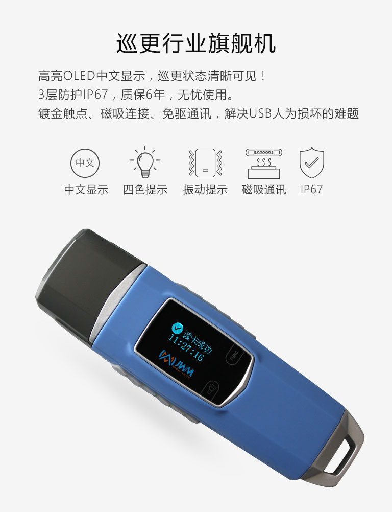 高亮OLED中文显示,巡更状态清晰可见